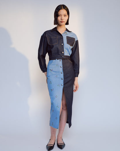 A striking sleeveless dress adorned with charming little bows across the upper part, adding a playful yet refined touch. Cinched at the waist, it creates a flattering silhouette that flows into a full midi-length skirt. Made from 100% organic Japanese cotton poplin, this dress is perfect for warm days and special occasions, adding a touch of elegance to your wardrobe.