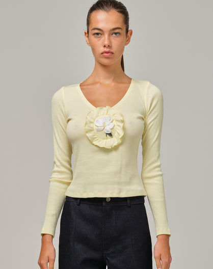 MIRABELLA dress is a romantic cotton dress with beautifully bellowed sleeves that cinch in at the wrist. The silhouette of the dress is simple [reminiscent of our popular Rosa dress] the calf-length body hemmed with a scallop trim, yet the uncomplicated shape is dramatised by a large oval brooch inspired detail at the centre of the blouse. The structure of the dress draws the eye to the centre of the fabric brooch, which is embellished with an intricate pink rose embroidery.